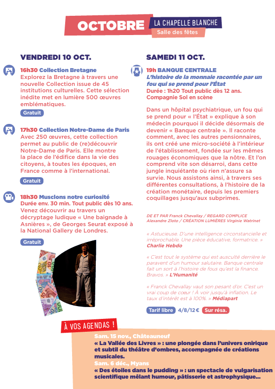 Samedi 11 : spectacle La Banque Centrale ; 1h20 dès 12ans